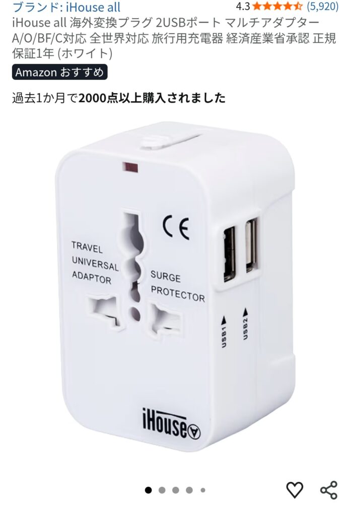 これはね、もう絶対。特に私はヨーロッパでよく使われているCタイプだけのものではなくて、⬇こういうマルチタイプのを持ってます!USBも繋げるし、イギリスはタイプが異なったりするのでとっても便利〜〜